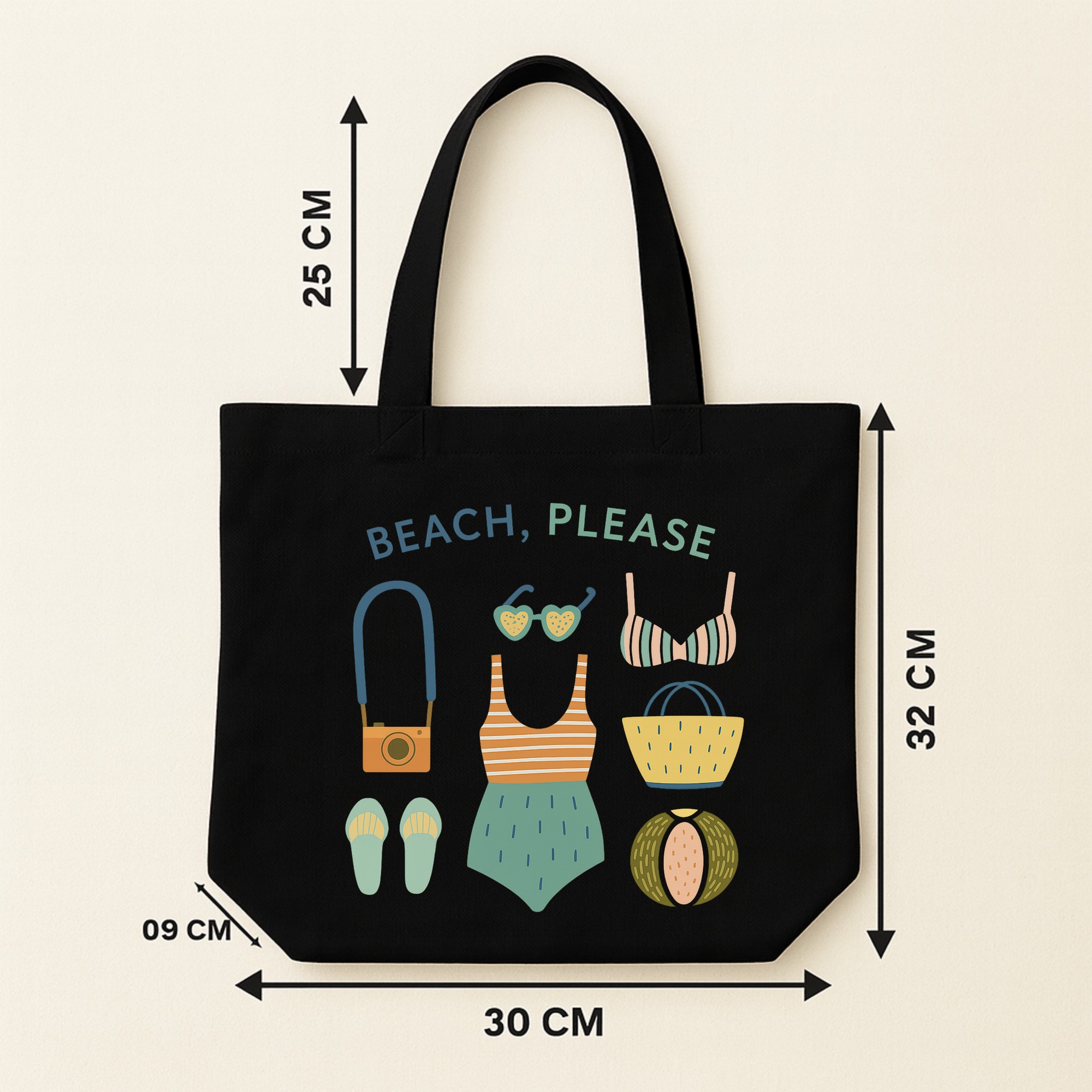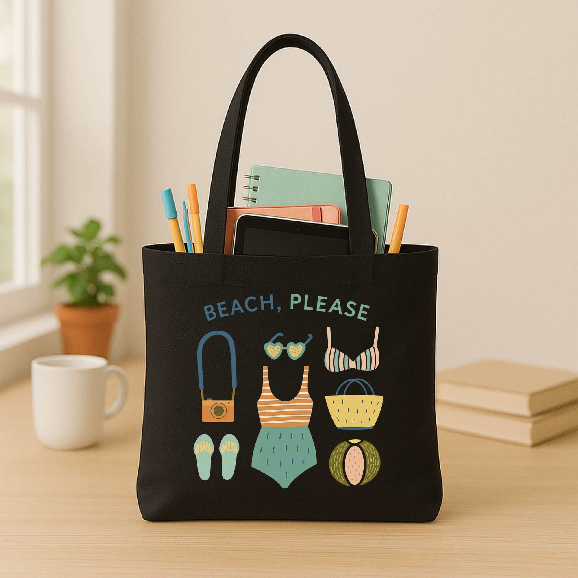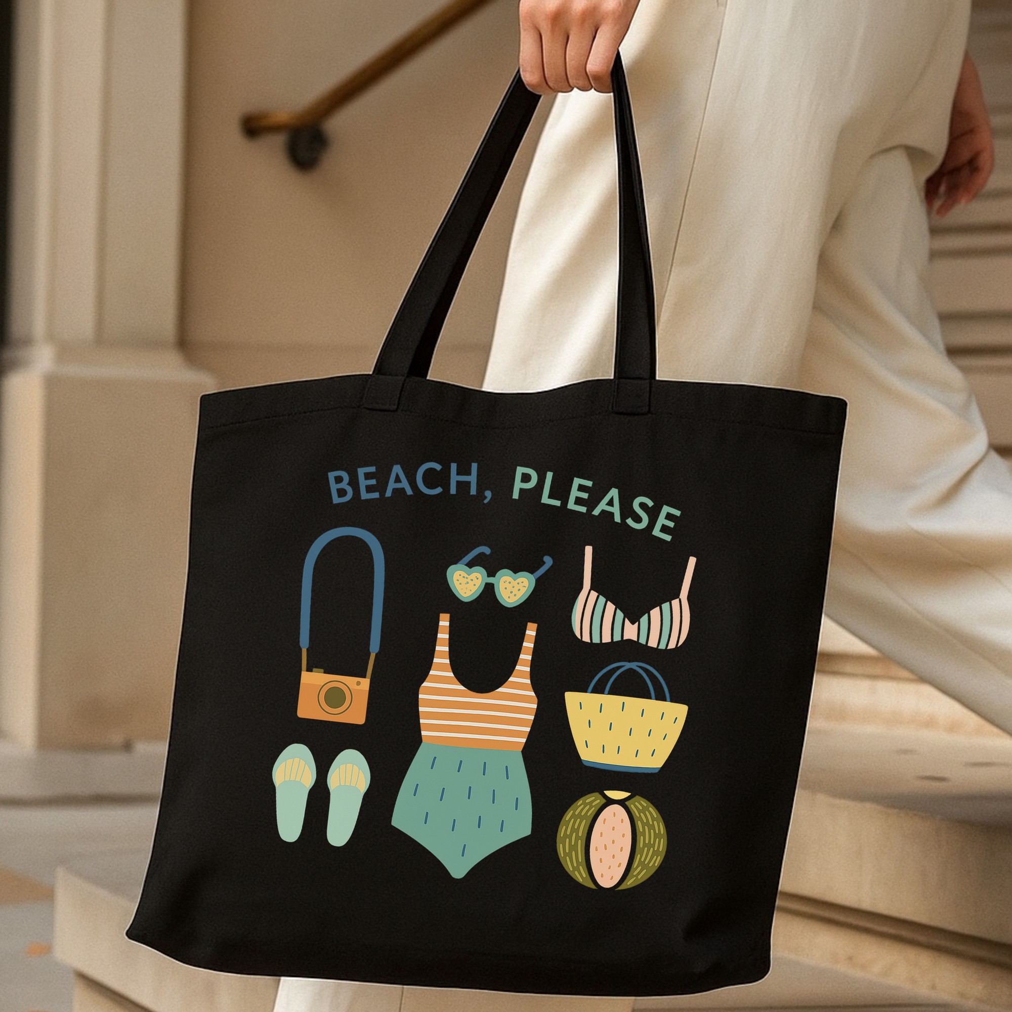 The “Beach, Please” Vacation Mode | Premium Black Canvas Tote bag