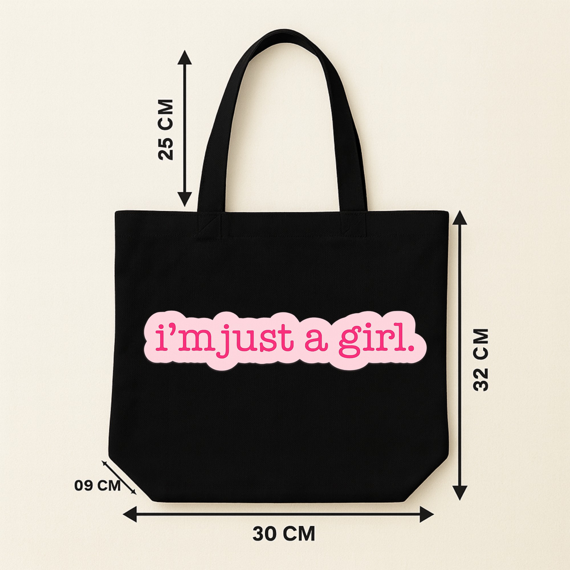 Viral Trend Alert: Features the iconic “i’m just a girl.” phrase in a cute pink bubble font. It’s the internet’s favorite catchphrase, now on your bag. Perfect for “Girl Math” and “Girl Dinner” enthusiasts.